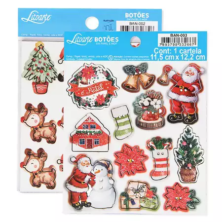 Botões Aplique Natal em Papel e MDF BAN Litoarte